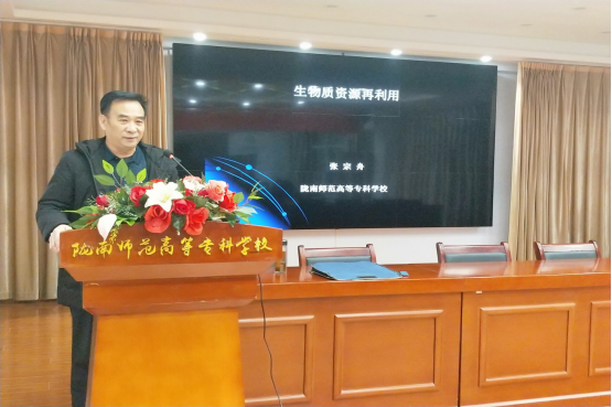 首先,张教授做了自我介绍。接着,张教授对生物质的再利用做了解释并提出,生物质主要指植物、而植物多是我们身边的农作物废弃后不用的作物如秸秆等,以及植物微生物为食物的动物,及其生产的废弃物通过加工让其变为可利用的资源再次投入使用。其次,对鸡的粪便如何经过生物处理和化学处理让其变废为宝做了科学完整的讲解。