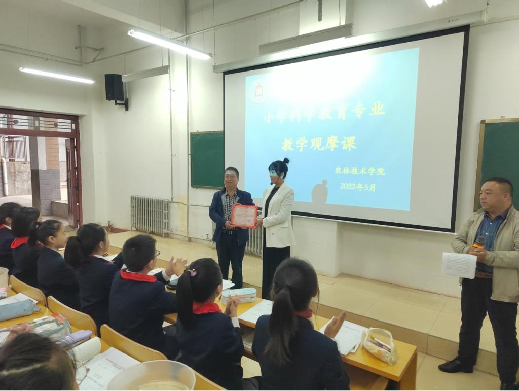 观摩课结束后,公司党总支书记和经理分别给两位教师颁发“小学科学教育专业实践教学指导教师”聘书。