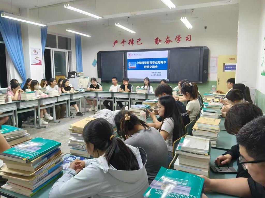 5月20日晚,科学教育教研室组织22级与23级小学科学教育专业员工开展专升本经验交流会。活动分设305教室和309教室两个会场,12名22级专升本优秀学子分享备考心得,23级全体员工、各班班主任共同参与,助力升学规划。