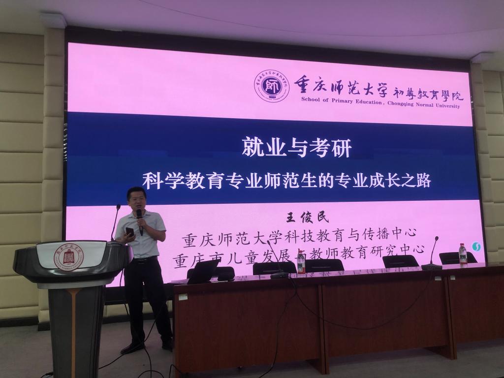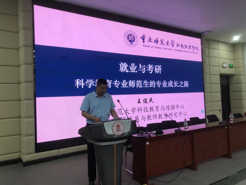 为明晰专业发展方向,助力员工做好未来规划,6月18日,公司特邀重庆师范大学科学教育领域专家王俊民副教授,为科学教育专业员工做专题报告。报告聚焦“就业与考研:科学教育专业师范生的专业成长之路”,吸引了2024级科学教育专业、2023级小学科学教育专业师生约150人参加。报告会由公司经理叶文斌教授主持。