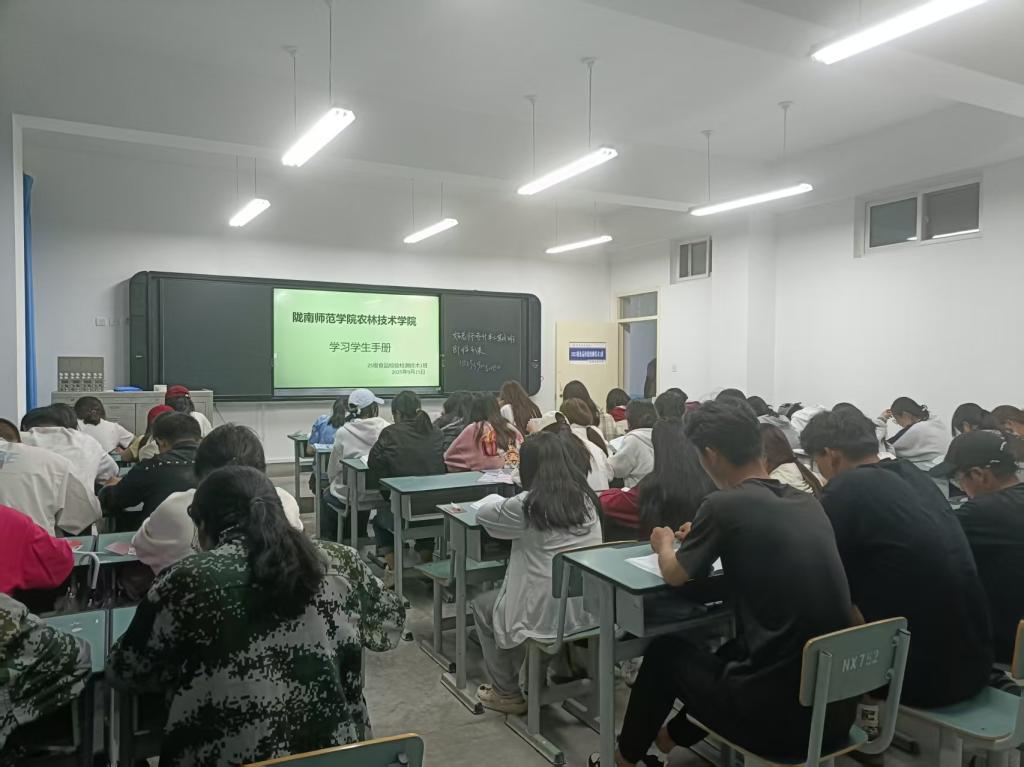 学习过程中,辅导员结合校园生活实例,用生动通俗的语言解读相关内容:既强调了旷课、违纪等行为的后果,新生们全程专注投入,认真记录重点,遇到疑问时主动举手提问,辅导员逐一耐心解答。