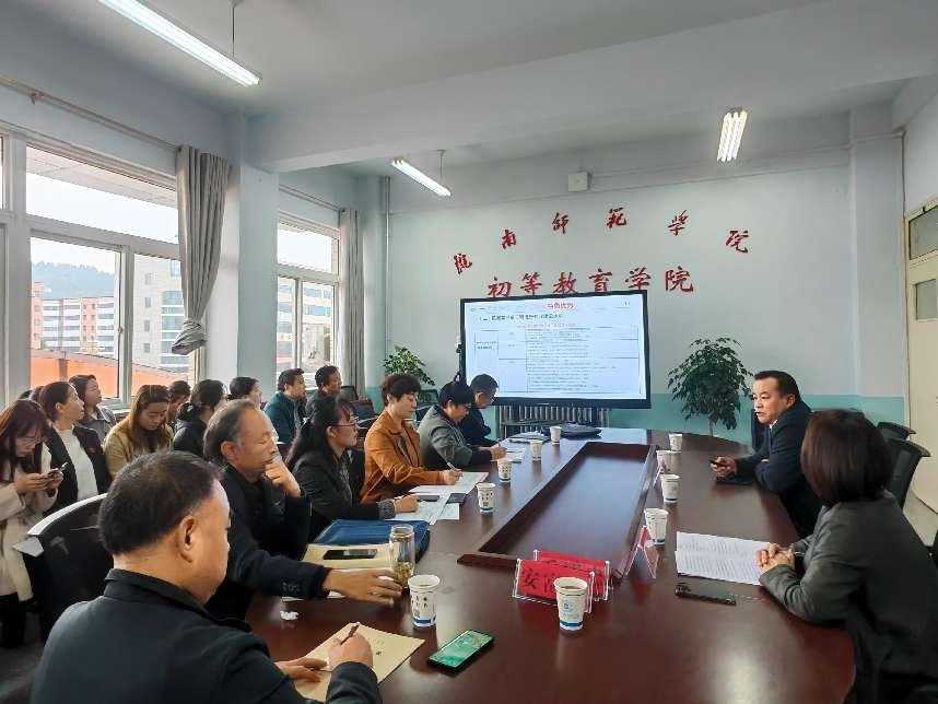 杨学良教授以《小学教育专业国家级一流专业建设的探索与实践》为主题,从天水师范公司小学教育专业发展的历史沿革、特色优势;专业改革的成效、主要举措、专业存在的问题、今后专业建设和改革的总体思路等方面做了详细的介绍。杨学良对于今后专业建设发展提出了建议:专业建设的顶层设计方面要坚持与时俱进,久久为功;在抓教学质量提升上厚积薄发,同频共振;在协同育人方面要融合发展,宣传推荐。