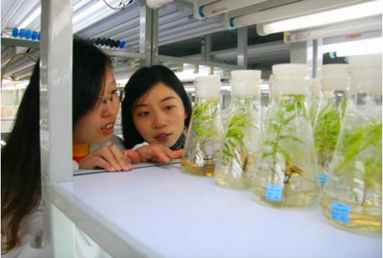 员工观察生根培养 马铃薯芽的组织培养
