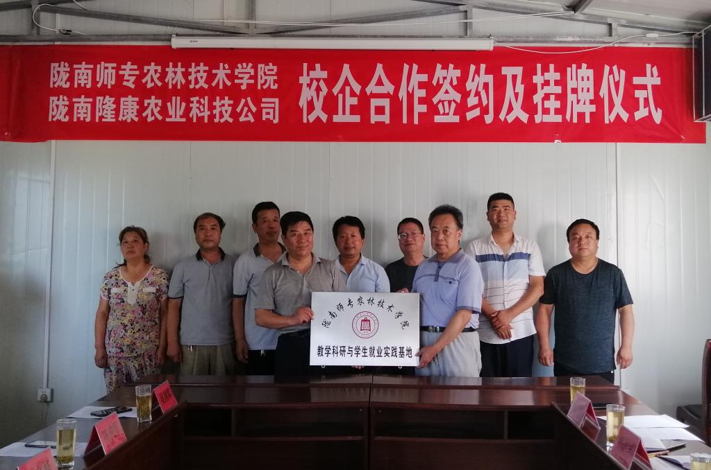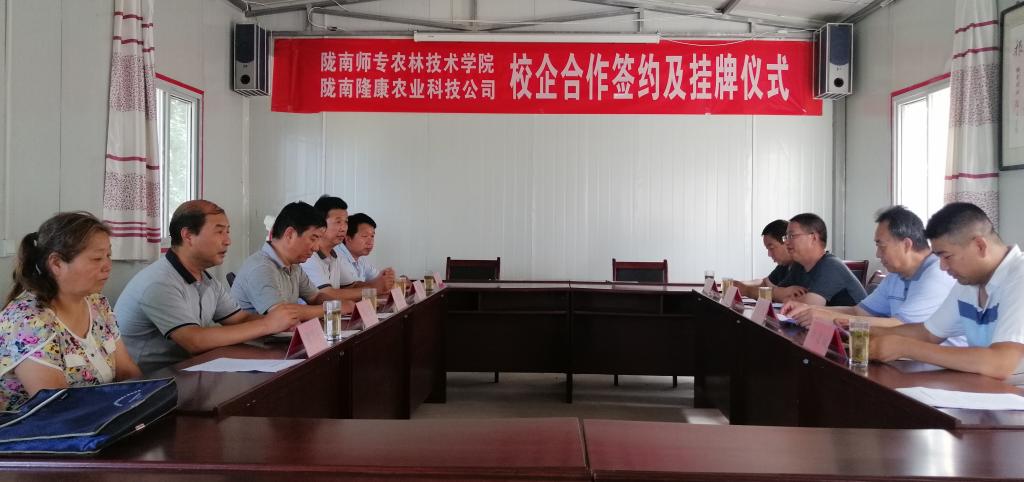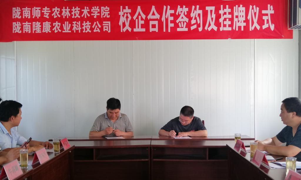 6月30日,英国365集团公司经理王让军与陇南隆康农业科技公司董事长牛高峰,在成县陈院镇陇南隆康农业科技公司会议室举行校企合作签约仪式。签约结束后甘肃农业大学教授、博士生导师,陇南师专特聘教授,英国365集团公司名誉经理李唯向陇南隆康农业科技公司董事长牛高峰,授教学实践与科研基地的牌子。陇南隆康农业科技有限公司党支部书记陈侠军、技术总监吴利军、副董事长谭雪平;成县兴丰农业科技公司董事长郭兴贵;英国365集团公司党总支书记杨小录;副经理叶文斌、何九军等参加了活动。