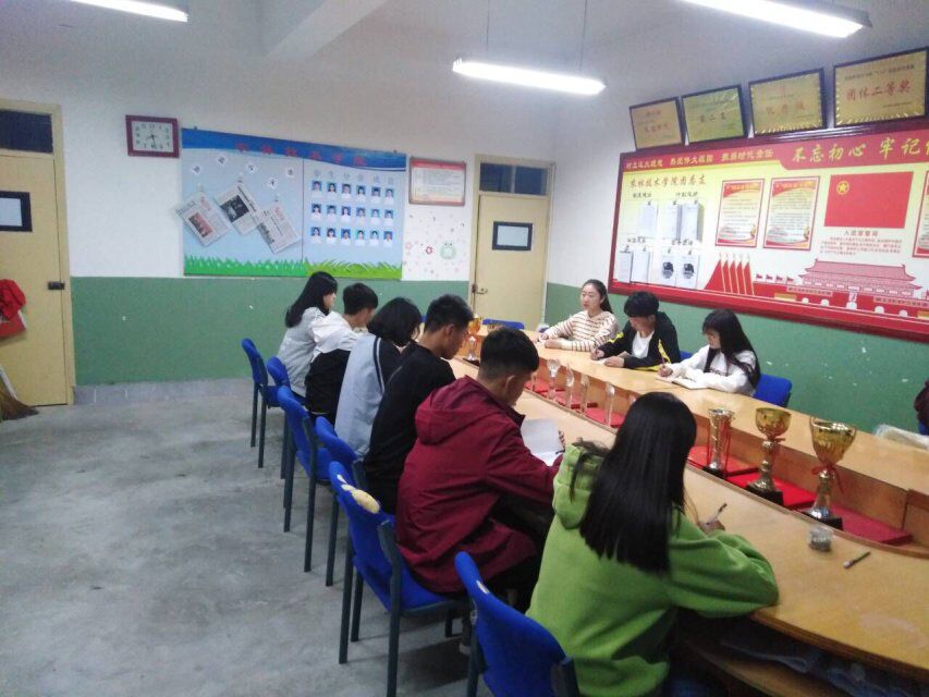 10月,团总支员工会分会的九个部门的部长对2019级干事进行业务培训,主要为了加强干事的工作能力,将员工会向规范化标准化建设。