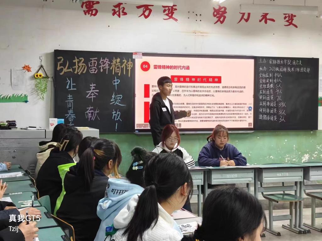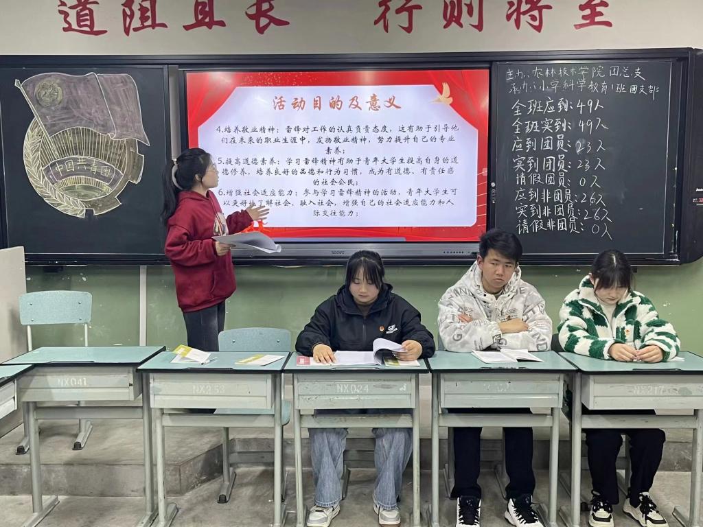 首先,团支书带同学们观看了雷锋的事迹,其次,团支书对团课进行展开讲述,同学们都认真投入到整个过程中,最终,同学们进行发言,团支书对团课进行总结,团课顺利结束。