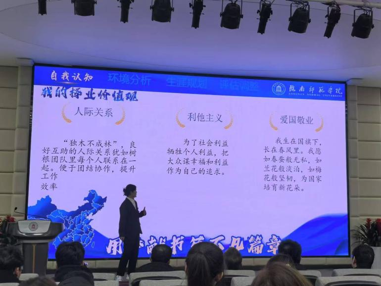 首先,参赛选手们通过深入的自我分析、行业调研与目标设定,精心绘制职业蓝图。比赛过程中,选手们精神饱满、各展风采,选手们结合自己的职业规划方案,进行了精彩的演讲,他们从兴趣爱好、专业特长、职业发展趋势等方面,阐述了自己的职业规划思路,以清晰的思路、详实的规划阐述未来职业方向。