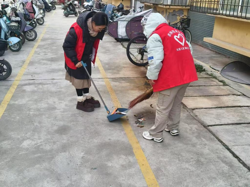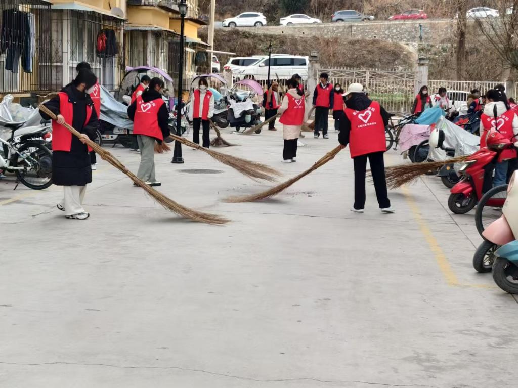 志愿者们秉持认真负责的态度,对社区街道、公共区域及卫生死角进行了全面清理。他们手持扫帚、簸箕等工具,清扫地面垃圾、铲除小广告、整理杂物,分工明确、配合默契,不怕脏、不怕累,忙碌的身影成为社区一道亮丽的风景线。