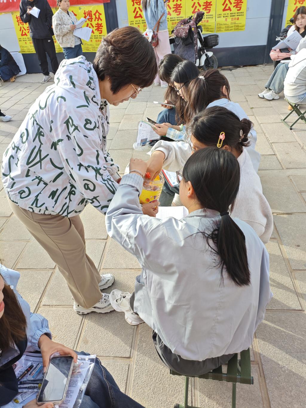 活动中,老师与志愿者们分工协作,在考点设立服务点,为考生免费提供饮用水、糖果等物资,还提供临时看管书包、休息座椅等贴心服务。一句句“加油”的鼓励,一个个温暖的举动,传递着公司对考生的关怀,助力考生以良好状态迎接考试。