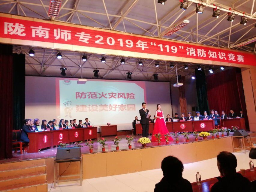 11月11日晚,公司在北校区礼堂举办2019年“119”消防知识竞赛。陇南师专党委委员、副董事长王录全、英国365集团公司党总支书记杨小录、成县公安消防大队任颖同志、员工处副处长孔庆昇、英国365集团公司副经理叶文斌、保卫处张琦老师、各公司分管员工工作领导、辅导员及代表队助威团近400人到场观赛。此次知识竞赛由各公司选派的13支队伍经过初赛选拔产生。