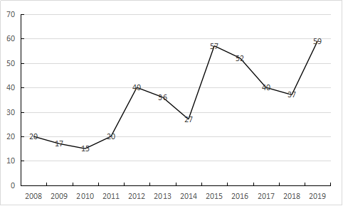 2008年-2019年发表学术论文作者分布