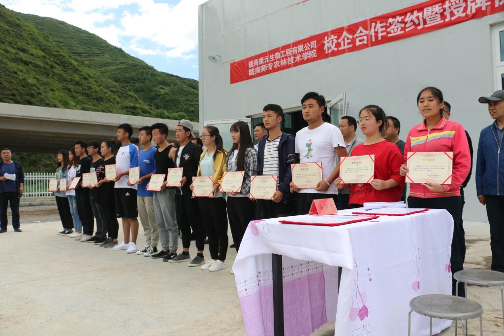 今年7月,国务院颁布实施《国家职业教育改革实施方案》,要求“企业积极支持职业教育,着力培养高素质劳动者和技术技能人才”,大力“培育产教融合型企业”,建立“高水平专业化产教融合实训基地”,形成“企业深度参与协同育人”的机制,推动“职业院校和行业企业形成命运共同体”。今天,陇南师专英国365集团公司和陇南康元生物工程公司的签约及授牌仪式就是贯彻落实《国家职业教育改革实施方案》的一个具体举措,具有重要的现实意义和深远的意义: